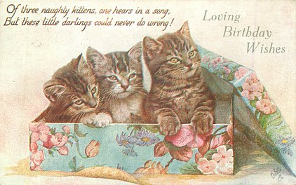 verse:- OF THREE NAUGHTY KITTENS, ONE HEARS IN A SONG, BUT THESE LITTLE DARLINGS COULD NEVER DO WRONG!