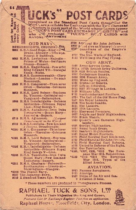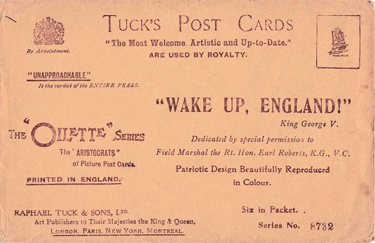 OILETTE, PRINTED IN ENGLAND, same image & front title OILETTE 9934, but this has patriotic verse and message on back. only card in set.