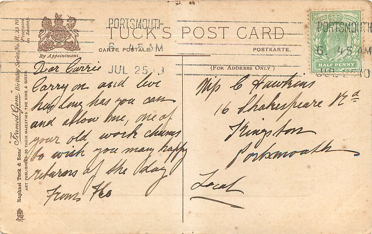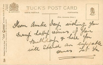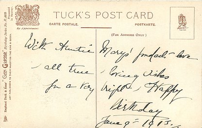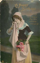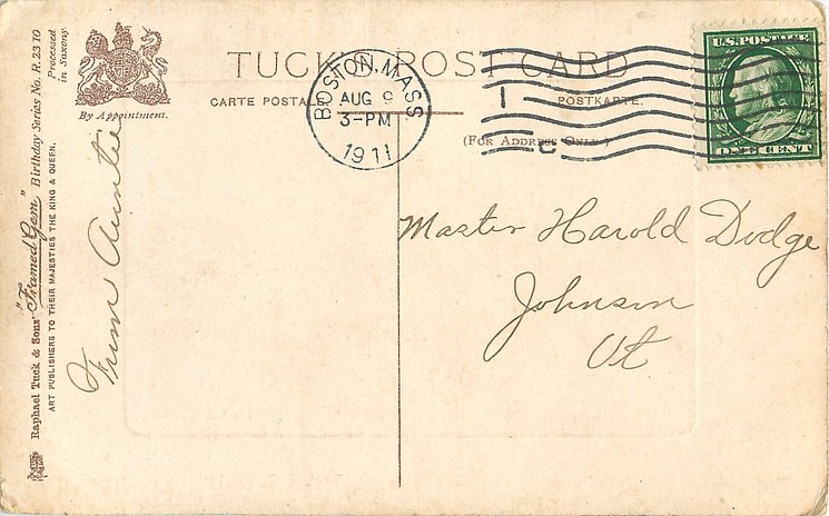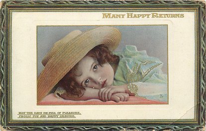 two images sold in packet of six similar cards in packet hand-stamped 503, 6 CHARMING BIRTHDAY CARDS