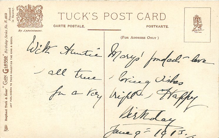 verse:- A BRIGHT AND HAPPY DAY TO YOU WITH LOTS OF PETS AROUND YOU, AND EVERYTHING TO MAKE YOU GAY AND MERRY AS A SUMMER DAY