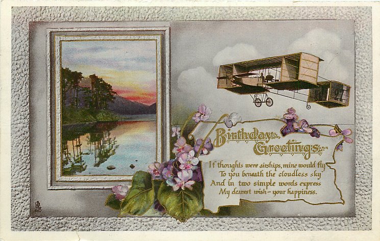 verse:- IF THOUGHTS WERE AIRSHIPS, MINE WOULD FLY TO YOU BENEATH THE CLOUDLESS SKY AND IN TWO//HAPPINESS., same image comes with different verse MY THOUGHTS ARE AIRSHIPS FLYING FAST...