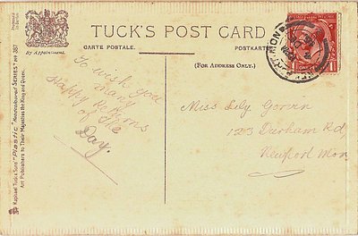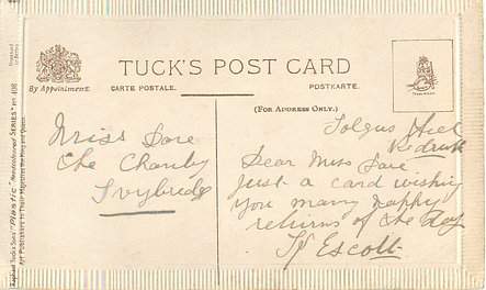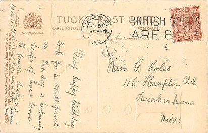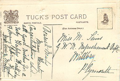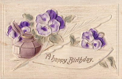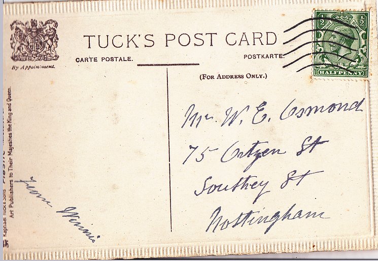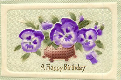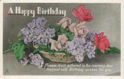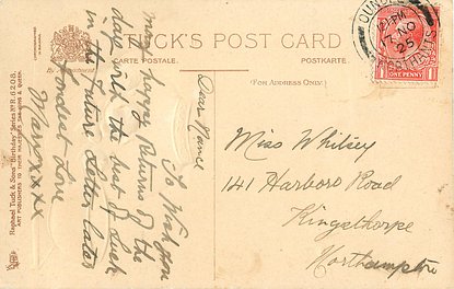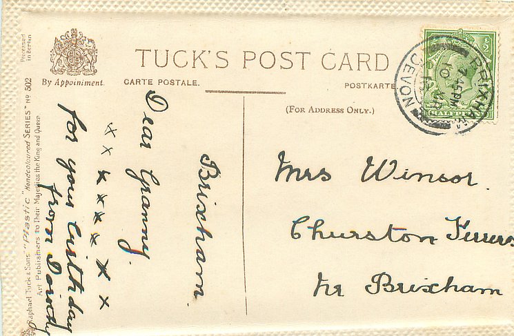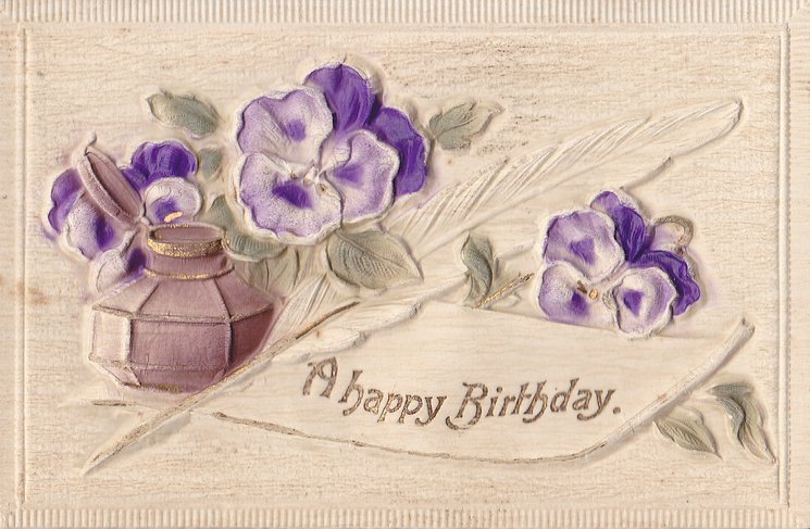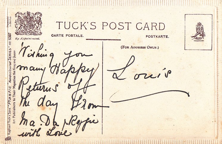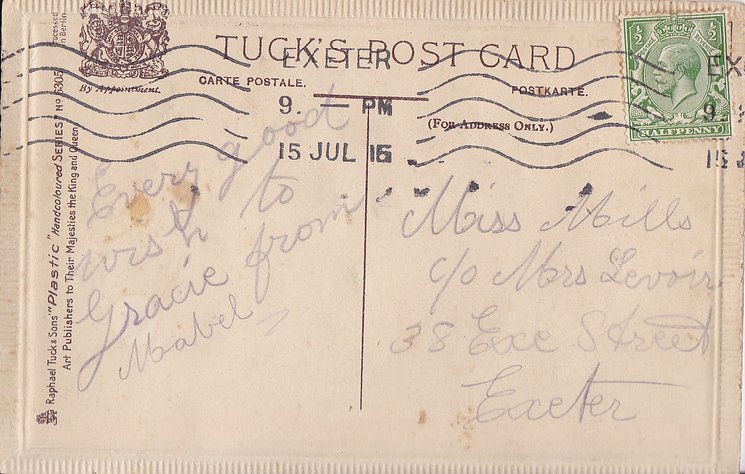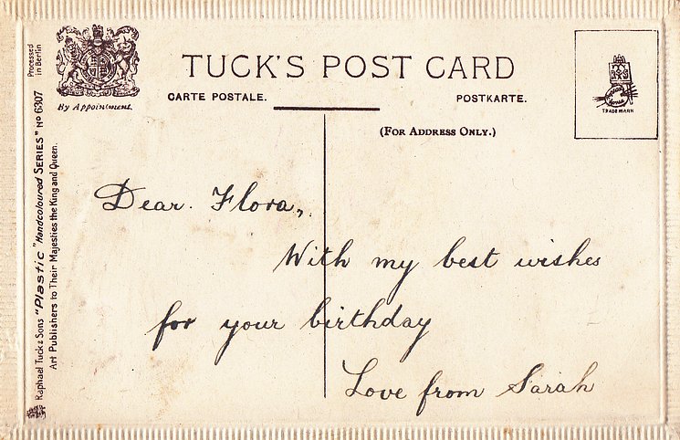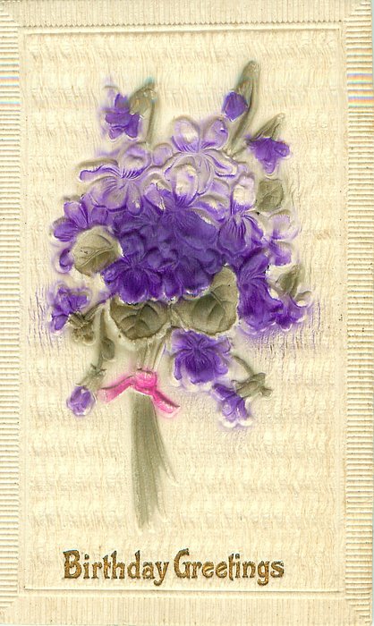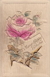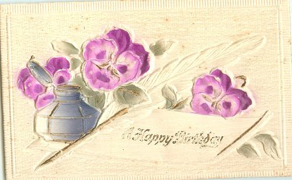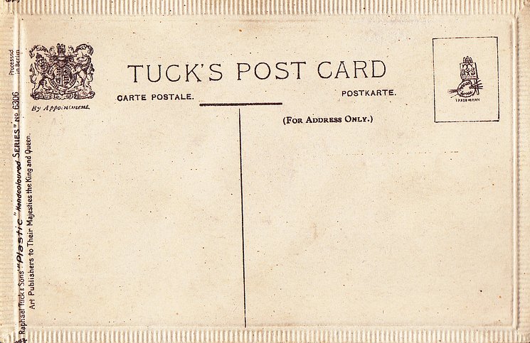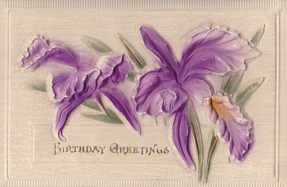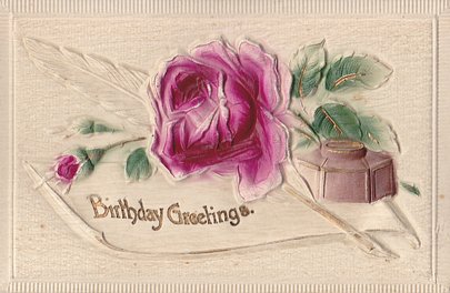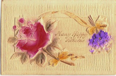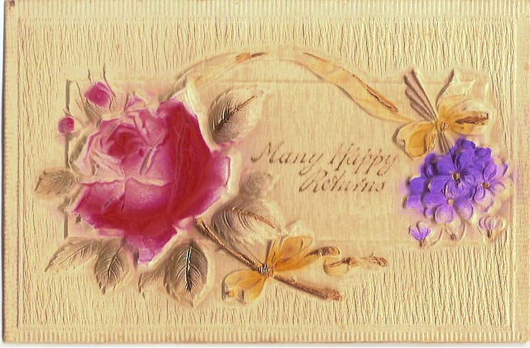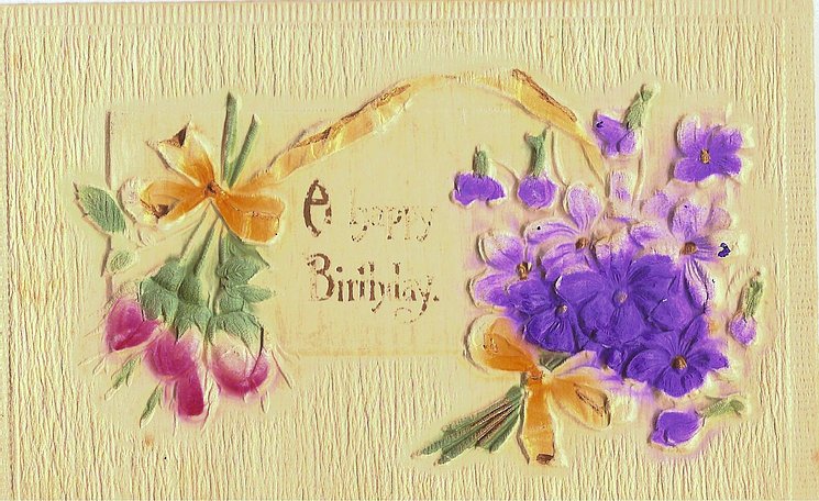 PLASTIC HANDCOLOURED, PROCESSED IN BERLIN, very heavy embossing on front, gilt greeting