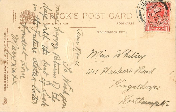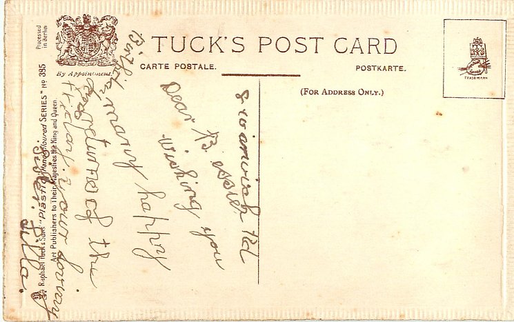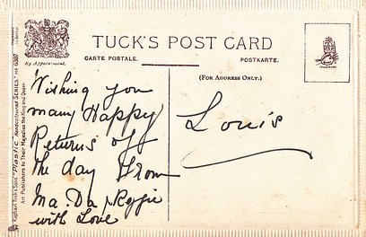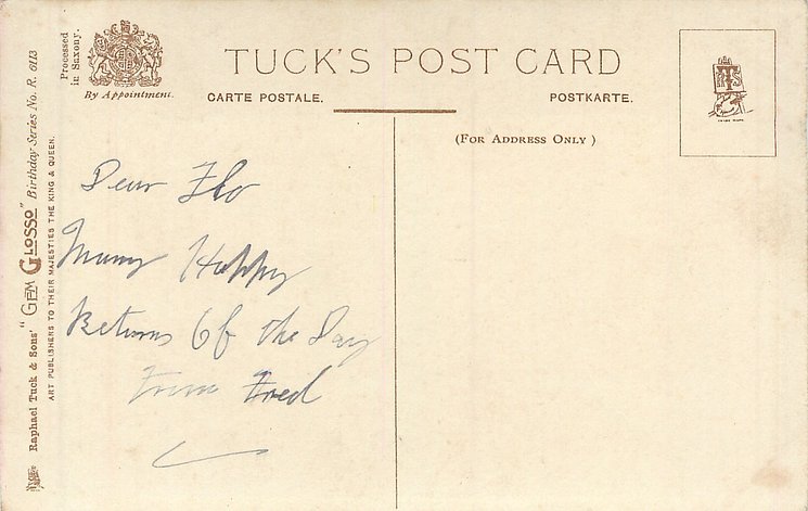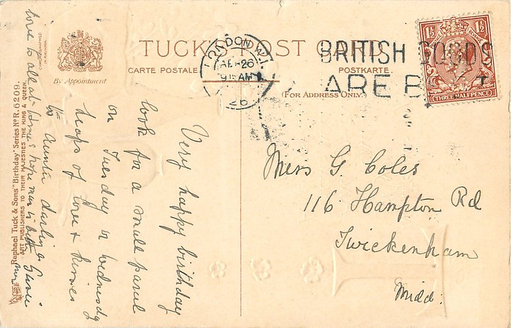 HANDCOLOURED, PROCESSED IN BERLIN, very heavy embossing on front, gilt greeting