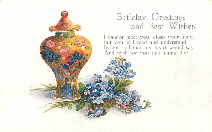 verse:- I CANNOT MEET YOU, CLASP YOUR HAND, BUT YOU WILL READ AND UNDERSTAND BY THIS, ALL THAT MY HEART WOULD SAY AND WISH TO YOU THIS HAPPY DAY.
