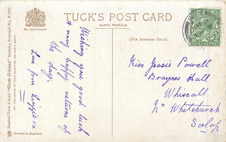 verse:- WITH SWEETEST MEMORIES O'ER ME THRONGING I RECALL YOUR FACE TO MIND//WISHES KIND