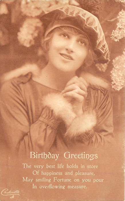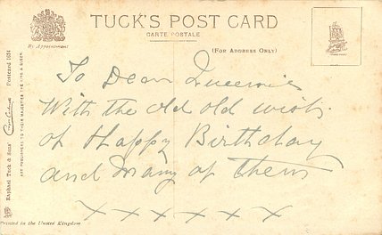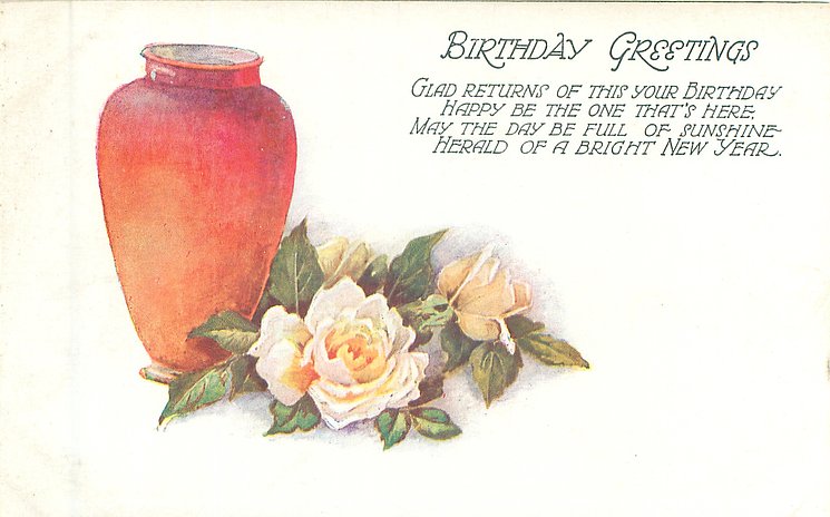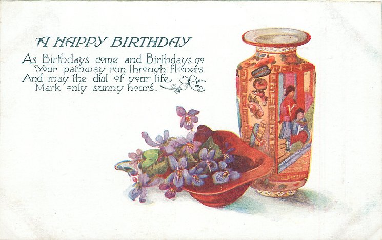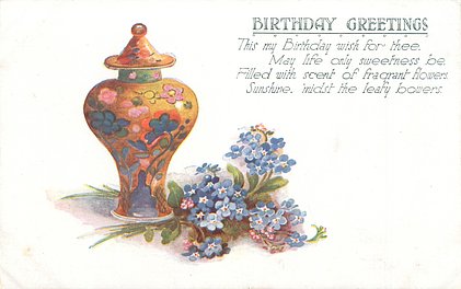 verse:- THIS IS MY BIRTHDAY WISH FOR THEE. MAY LIFE ONLY SWEETNESS BE. FILLED WITH THE SCENT OF FRAGRANT FLOWERS SUNSHINE, 'MIDST THE LEAFY BOWERS.