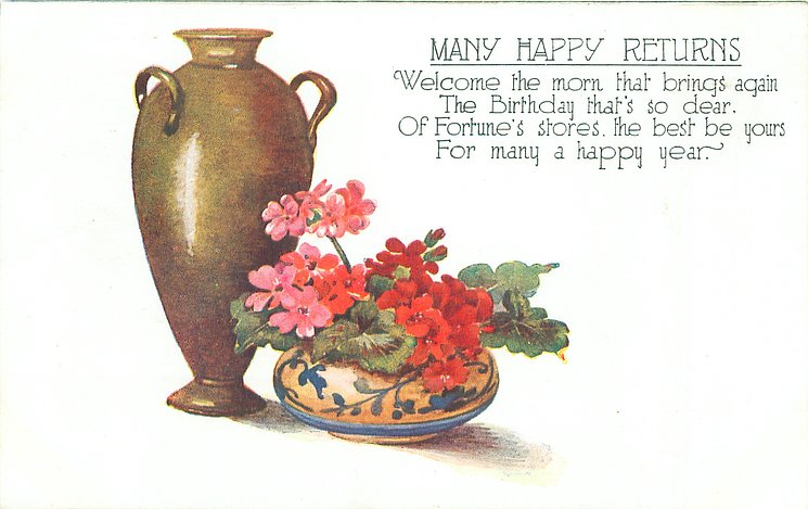 verse:- WELCOME THE MORN THAT BRINGS AGAIN THE BIRTHDAY THAT'S SO DEAR. OF FORTUNE'S STORES THE BEST BE YOURS FOR MANY A HAPPY YEAR.