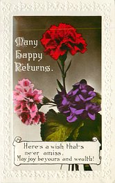 inset number uncertain verse:- GLAD RETURNS OF THIS, YOUR BIRTHDAY, HAPPY BE THE ONE THAT'S HERE, MAY THE DAY BE FULL OF SUNSHINE HERALD OF A BRIGHT NEW YEAR
