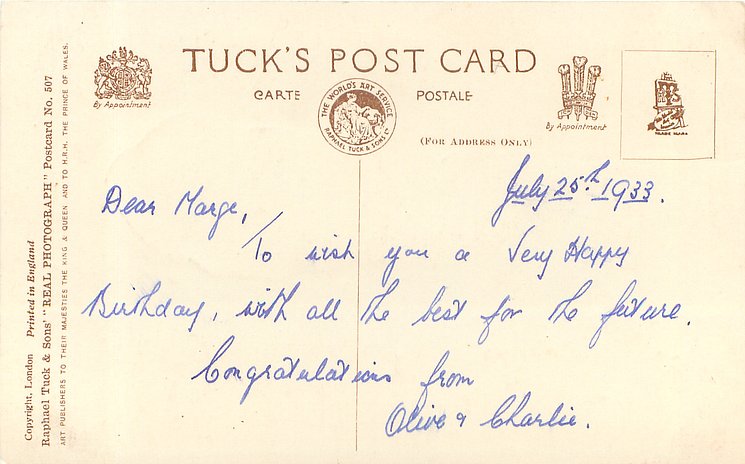 OILETTE, PRINTED IN THE UNITED KINGDOM, COPYRIGHT LONDON, same images different greetings & verses OILETTE birthday roses 1873