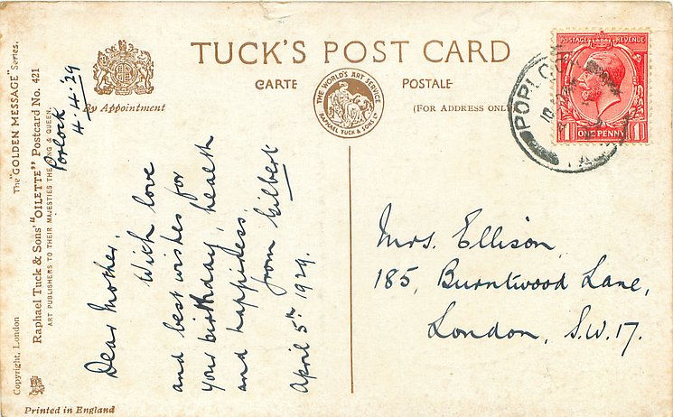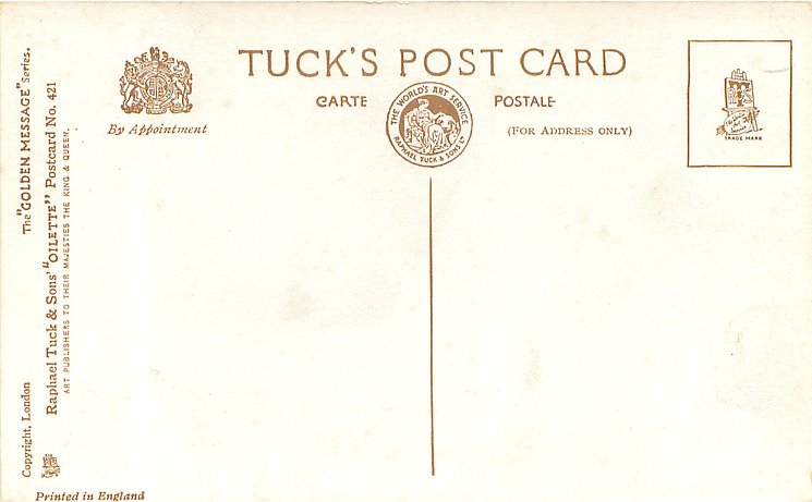 OILETTE, PRINTED IN ENGLAND, COPYRIGHT LONDON, very thick cards, same insets used for cards with differing colours or wording