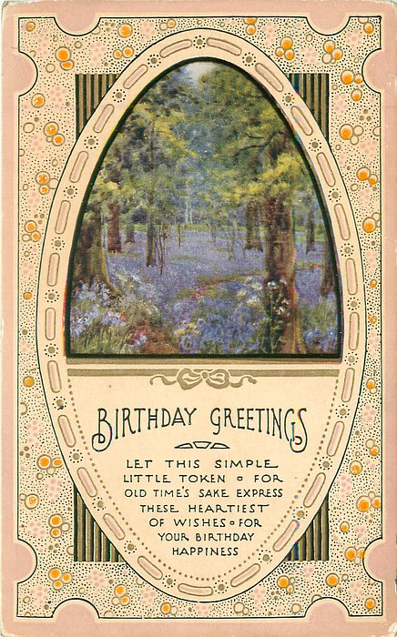 verse:- LET THIS SIMPLE LITTLE TOKEN FOR OLD TIME'S SAKE EXPRESS THESE HEARTIEST OF WISHES FOR YOU BIRTHDAY HAPPINESS