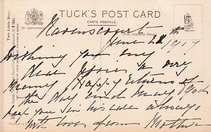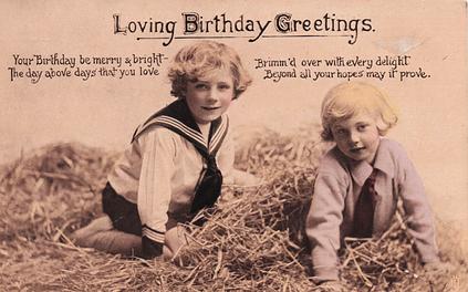 verse:- THIS LITTLE CARD MY LOVING WISH CONVEYS FOR MANY A YEAR OF BRIGHT AND HAPPY DAYS.