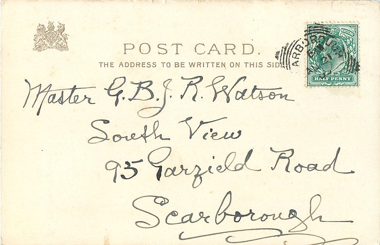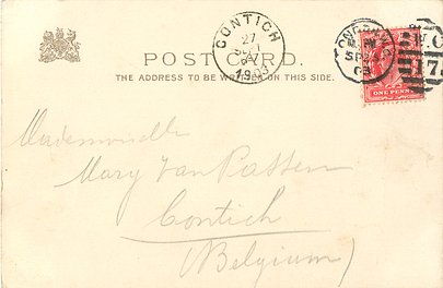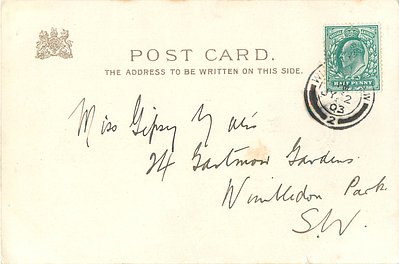 WRITE AWAY, u/b, DESIGNED IN ENGLAND, CHROMOGRAPHED IN GERMANY, listed in 1904 POSTCARD Catalogue
