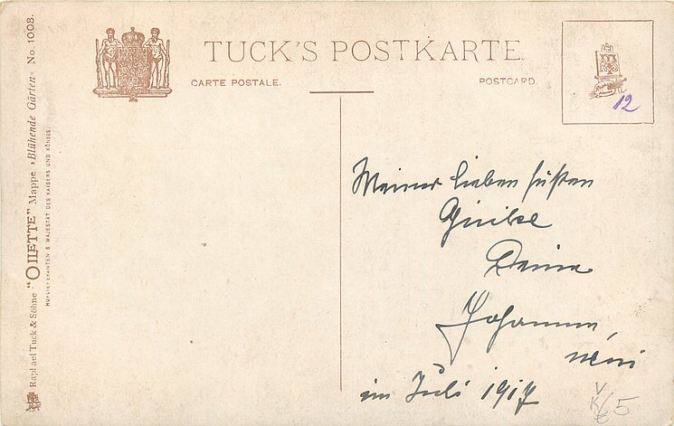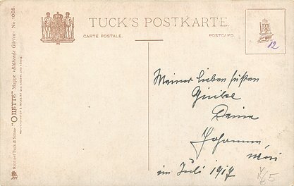 OILETTE (on front), PRINTED IN ENGLAND, COPYRIGHT, LONDON, same image but different titles on backs for sale on board each ship; keeping the same fronts & changing the titles on back was presumably an economy measure