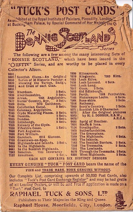 OILETTE, BONNIE SCOTLAND, CHARMING TARTAN AND FLORAL DESIGNS WITH MONO VIEWS on packet, TARTAN VIEW on back of cards, PRINTED IN ENGLAND