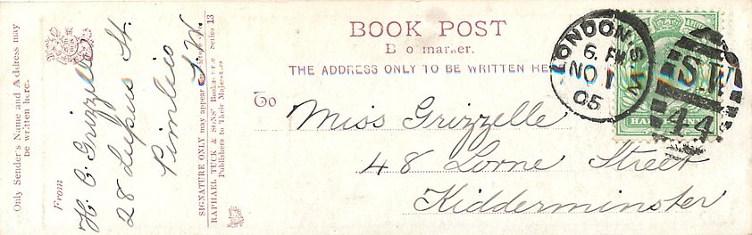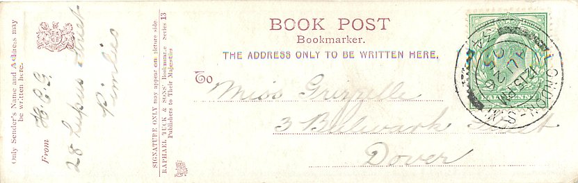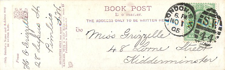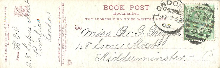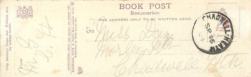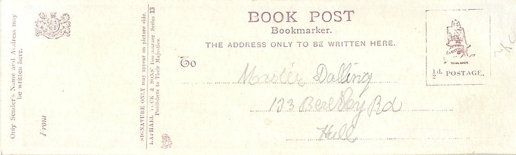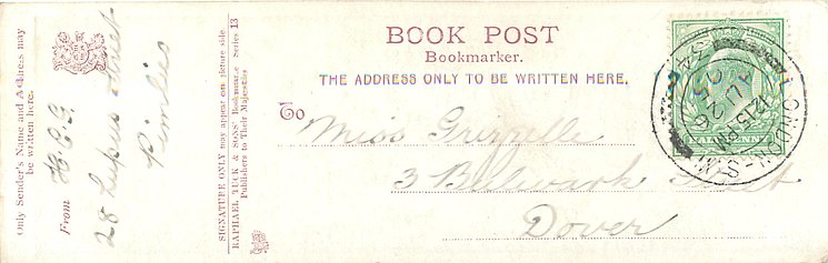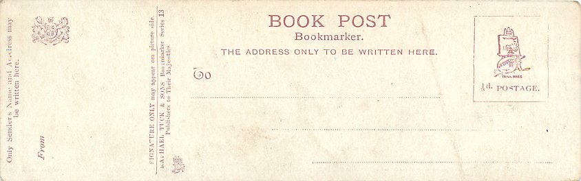 BOOK POST, ONLY SENDER'S NAME AND ADDRESS MAY BE WRITTEN HERE, SIGNATURE ONLY MAY APPEAR ON PICTURE SIDE, cards 14 x 4 cm, listed in 1904 POSTCARD Catalogue