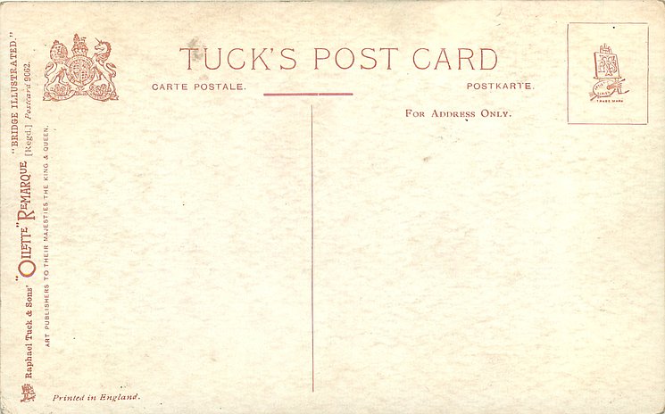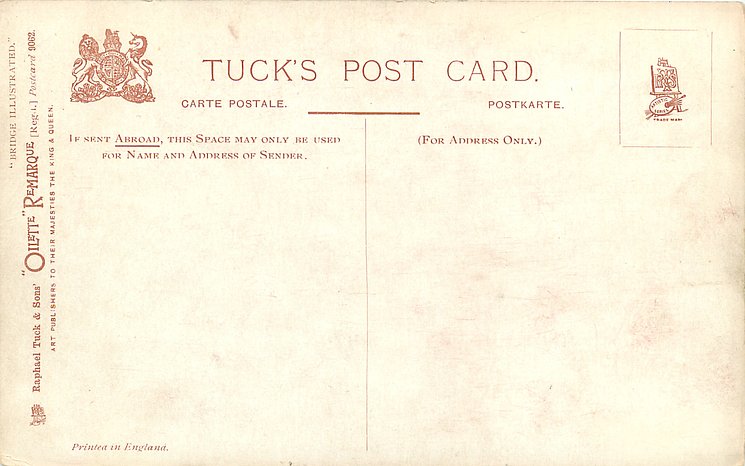 2 backs, OILETTE REMARQUE, PRINTED IN ENGLAND, listed in 1908/1909 &1911/1912 Postcard Catalogue