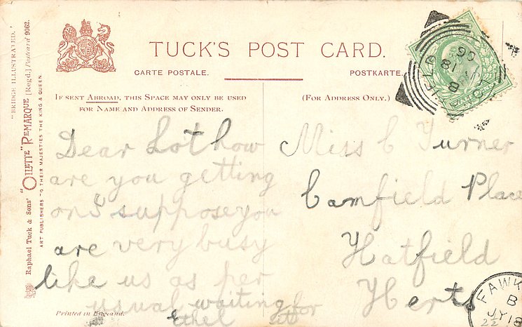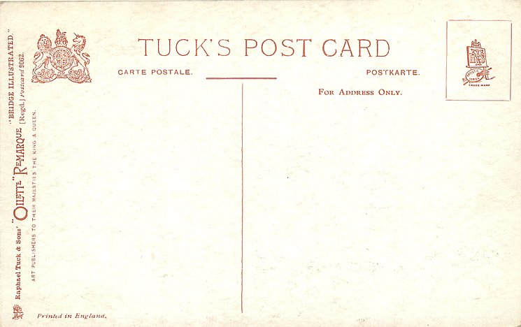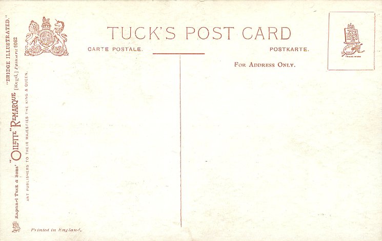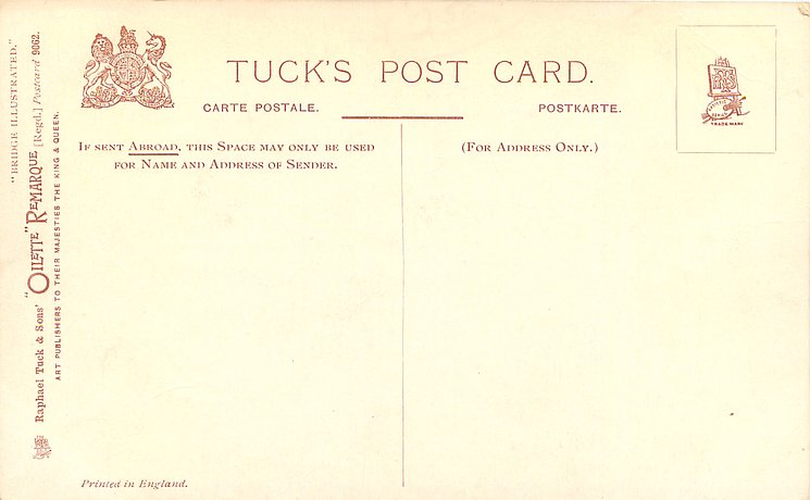 2 backs, OILETTE REMARQUE, PRINTED IN ENGLAND, listed in 1908/1909 &1911/1912 Postcard Catalogue
