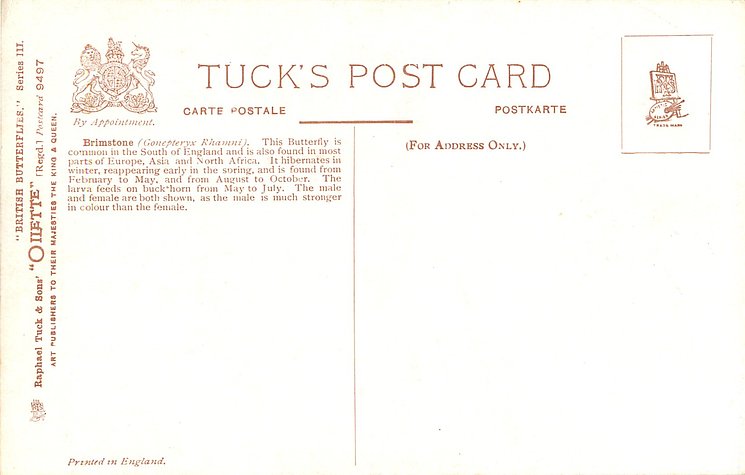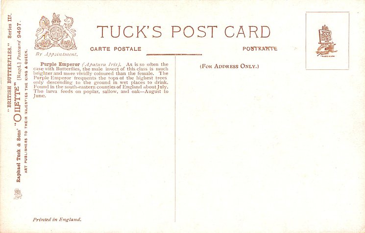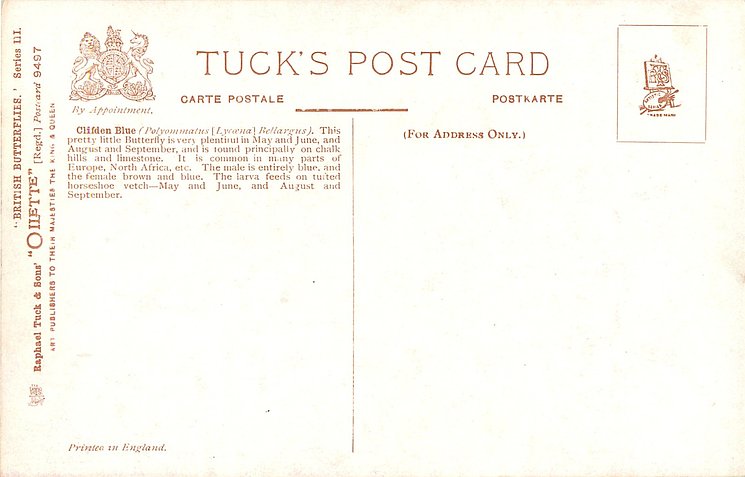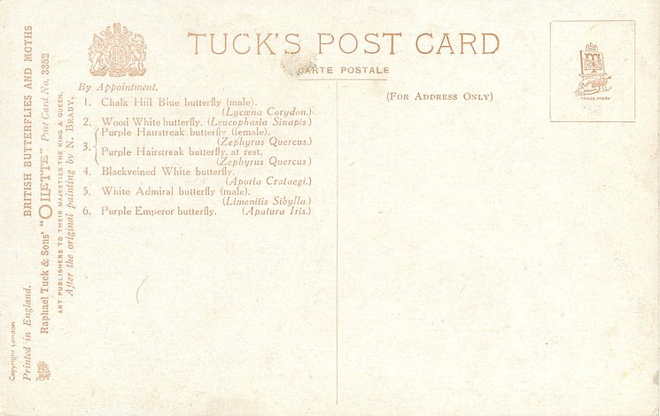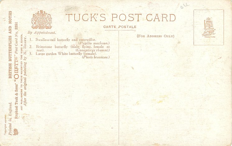 OILETTE. PRINTED IN ENGLAND, listed in 1908/1909 & 1911/1912 & 1912/1913 & 1912/1913 POSTCARD Catalogue