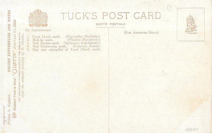 OILETTE, PRINTED IN ENGLAND, COPYRIGHT LONDON, AFTER THE ORIGINAL PAINTING BY N. BRABY. listed in 1930 POSTCARD Catalogue
