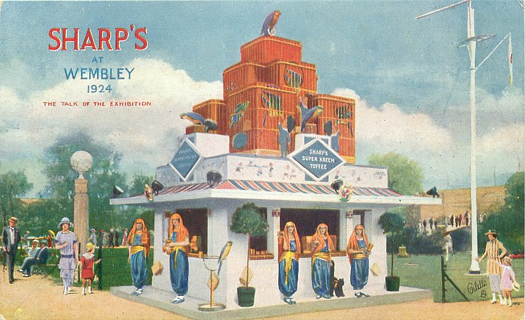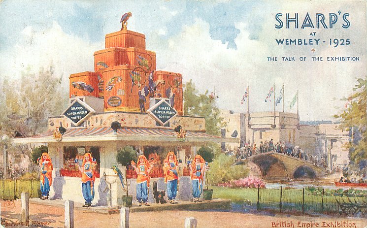 SHARP'S SUPER KREEM TOFFEE (on building) back:- SHARP'S SUPER KREEM TOFFEE THE POPULAR FAVOURITE "SPEAKS FOR ITSELF" IN EVERYBODY'S MOUTH