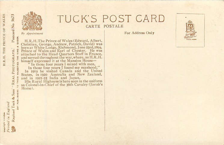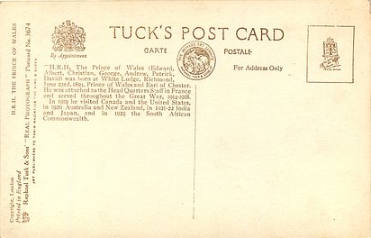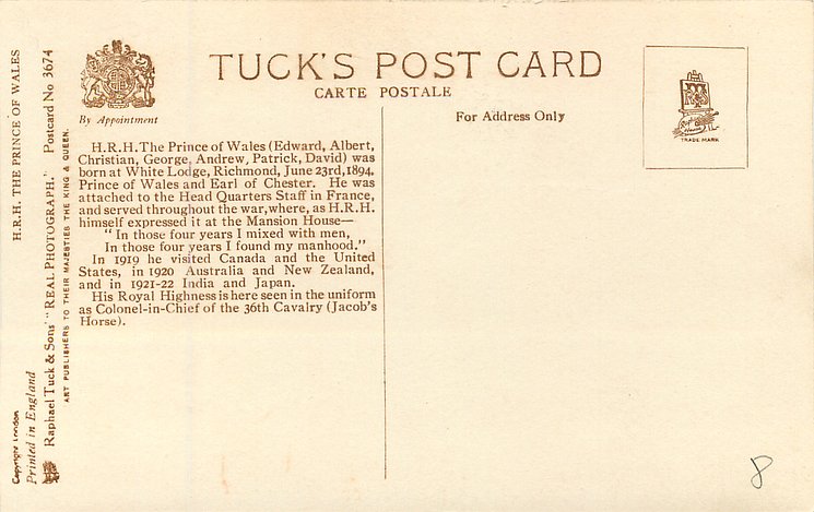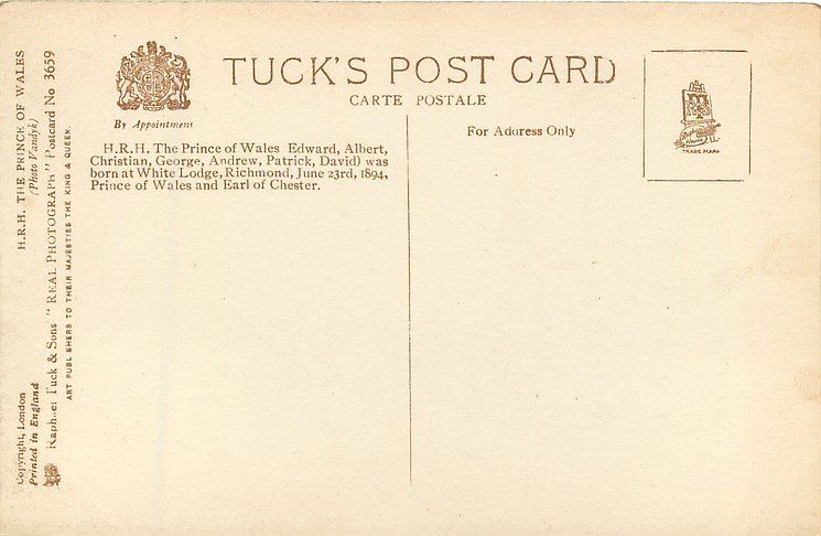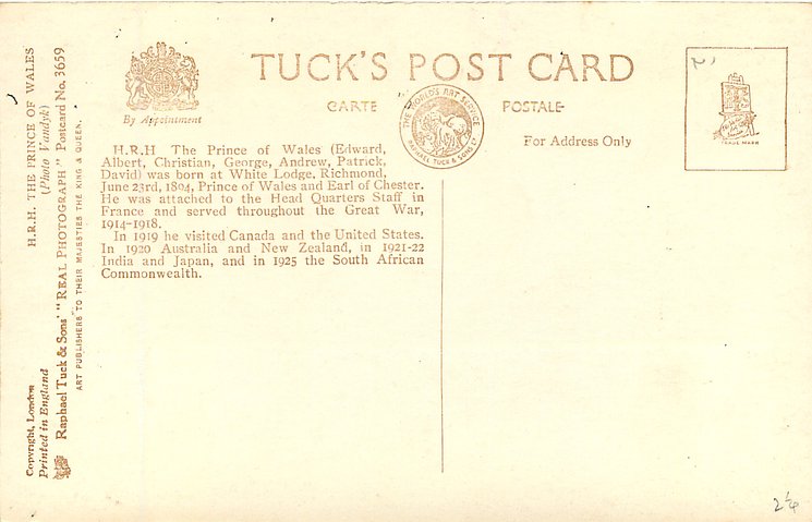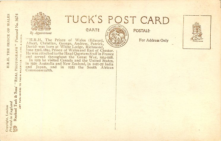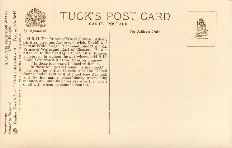 REAL PHOTOGRAPH, PRINTED IN ENGLAND, COPYRIGHT LONDON, listed in 1930 POSTCARD Catalogue