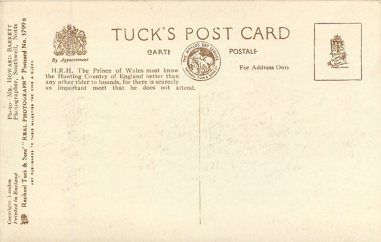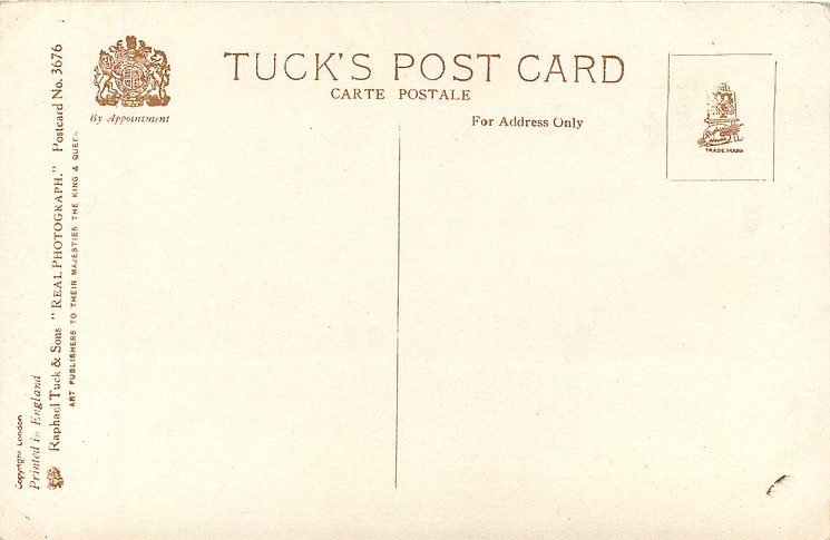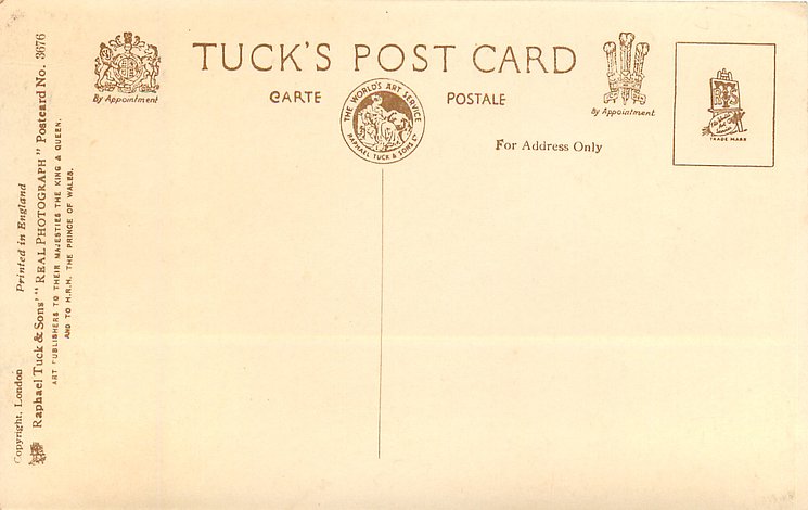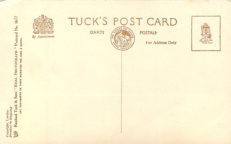 REAL PHOTOGRAPH, PRINTED IN ENGLAND, COPYRIGHT LONDON, listed in 1930 POSTCARD Catalogue, same image, larger OILETTE 9888, comes w/o series title, 2 backs