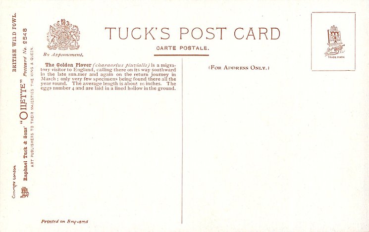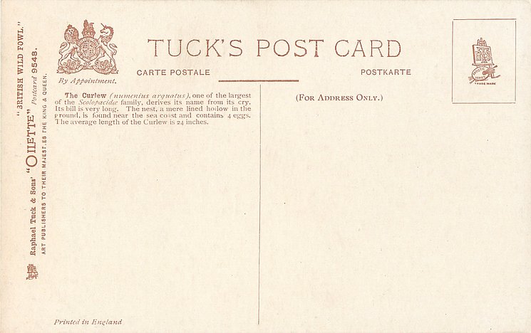 OILETTE, PRINTED IN ENGLAND, with or w/o COPYRIGHT LONDON, listed in 1926/1927 Postcard Catalogue