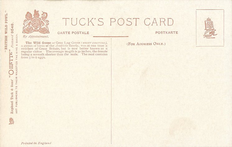 OILETTE, WIDE-WIDE-WORLD, BRITTANY, PROCESSED IN BAVARIA (in stamp box), listed in 1911/1912 & 1913/1914 Postcard Catalogues, same images & card titles as French back SERIE 848 BRETAGNE