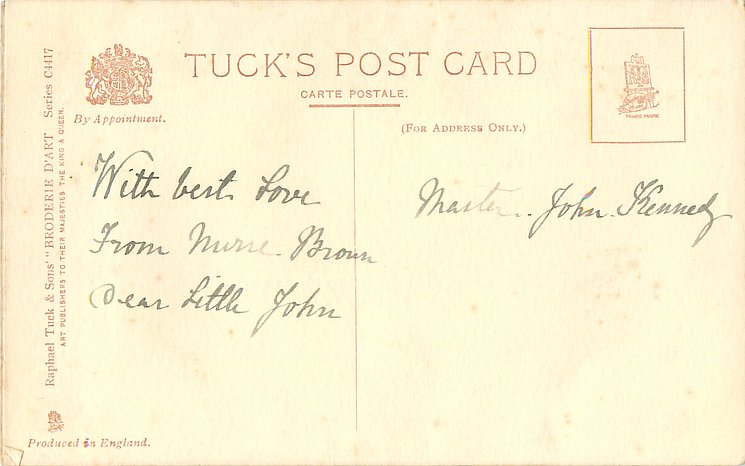 PRODUCED IN ENGLAND, possible tuck error of some sort, appears to be birthday card