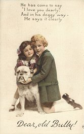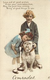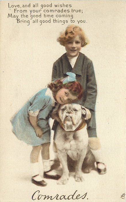 HE'S ONLY A BRITISH BULLDOG FAITHFUL AND BRAVE AND TRUE BUT HE'S BRINGING ALL KINDLY WISHES AND THE WARMEST OF LOVE TO YOU -- BRAVE AND TRUE
