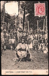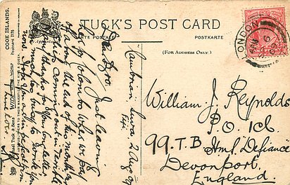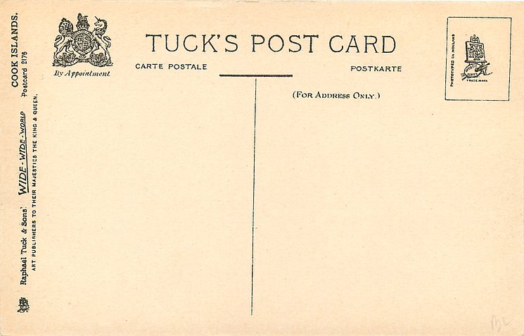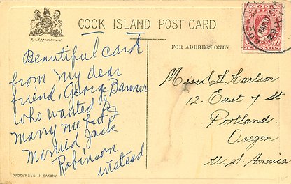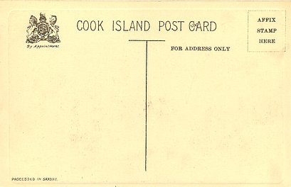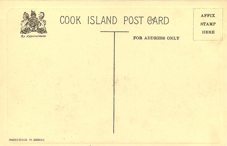 COOK ISLAND POSTCARD, PROCESSED IN SAXONY, embossed margins