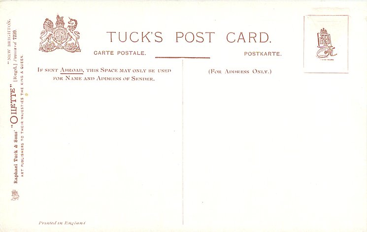 OILETTE, PRINTED IN ENGLAND, set comes opt. in red and blue AMERICAN Y.M.C.A., listed in 1908/1909 & 1911/1912 Postcard Catalogue