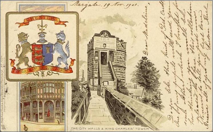 PHOTOTYPED IN BERLIN, BY ROYAL WARRANT TO THE KING (with crest), BOLLANDS', CHESTER, THE ROYAL BRIDE CAKE MAKERS, 2 insets, close up view of RESTAURANT & view
