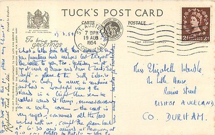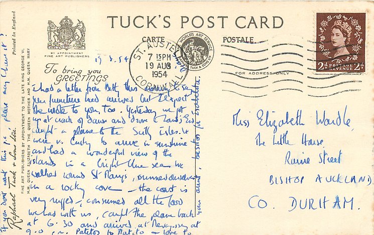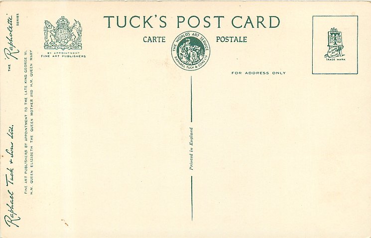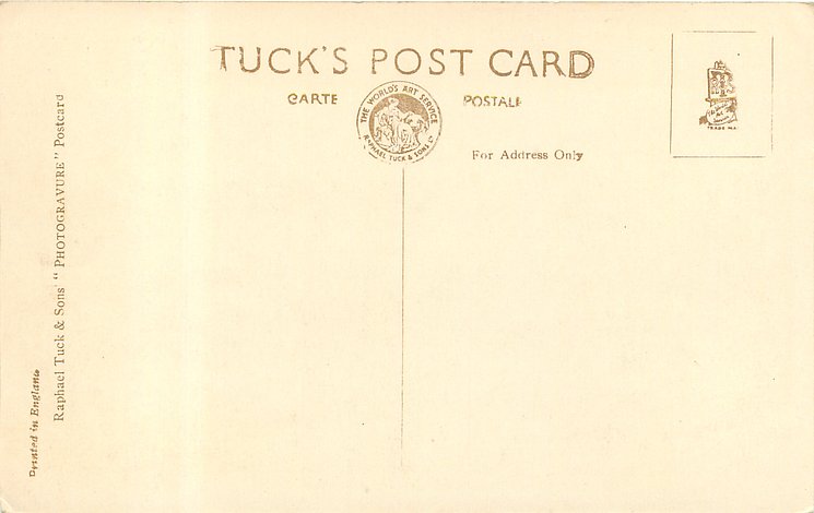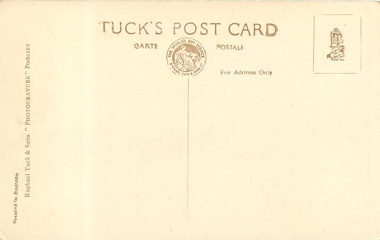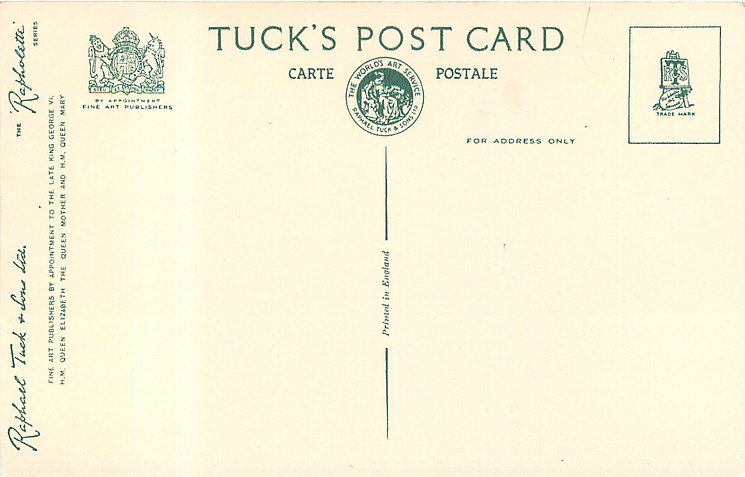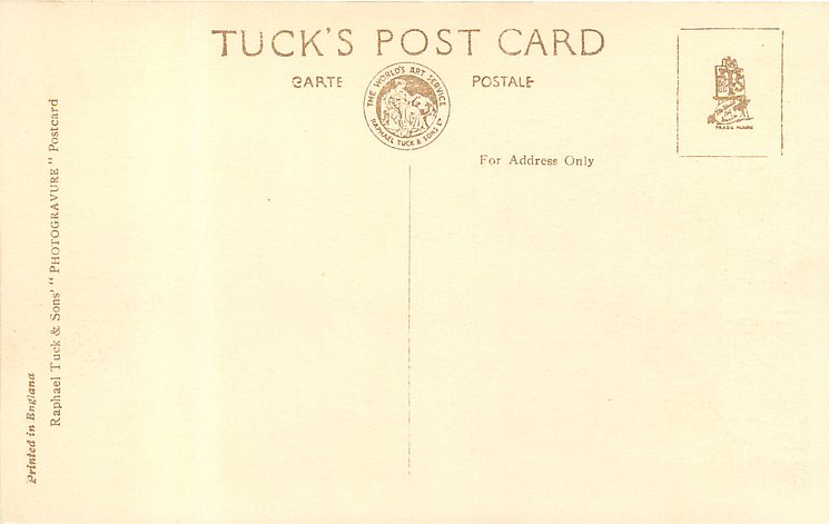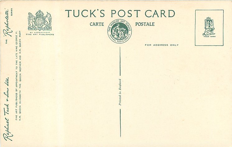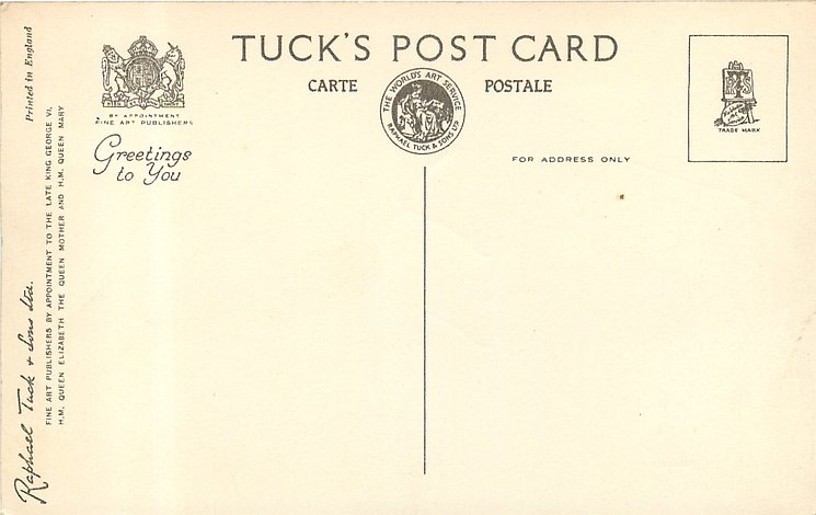 REAL PHOTOGRAPH, PRINTED IN ENGLAND, later printings come with GREETINGS TO YOU or TO BRING YOU GREETINGS on back