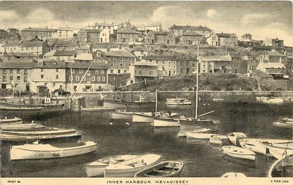 comes without tradename, or PHOTOGRAVURE or sepia printed card, same image as Tuck Ephemera MEVAGISSEY MVGY 1