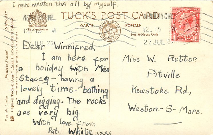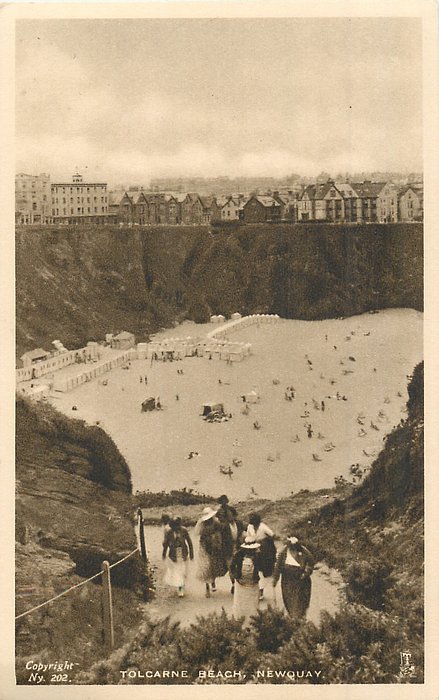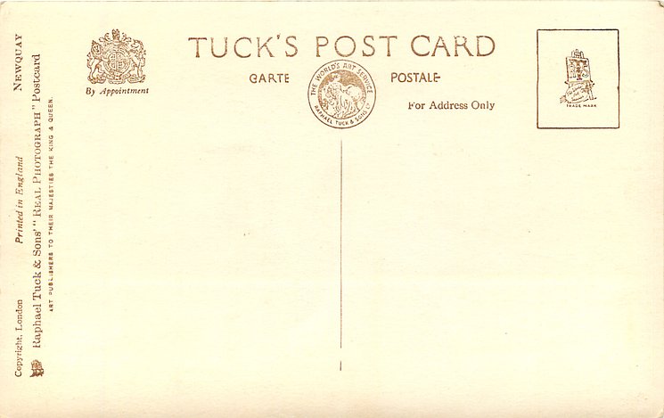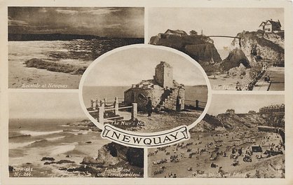 on packet THE "COLORED GRAVURE" SERIES TWELVE BEAUTIFUL VIEW POSTCARDS OF NEWQUAY. PUBLISHED FOR OAKLEY & SON, 38, EAST STREET, NEWQUAY.