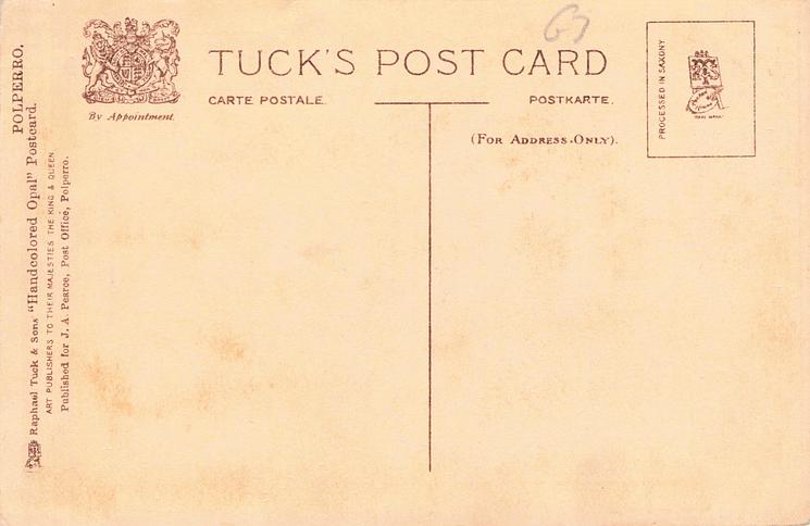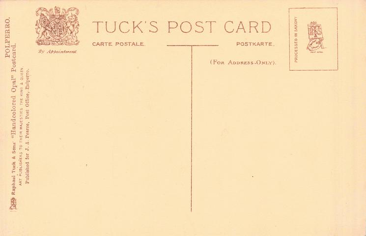 HANDCOLORED OPAL, PROCESSED IN SAXONY (in stamp box), PUBLISHED FOR J.A. PEARCE, POST OFFICE, POLPERRO. handcoloured