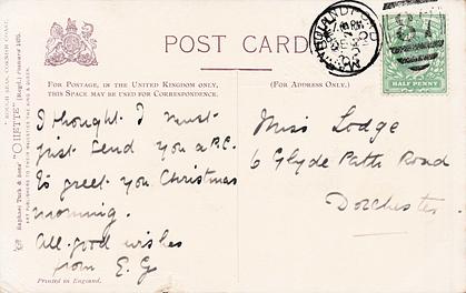 glossy, OILETTE, PRINTED IN ENGLAND, glossy finish, listed in 1908/1909 & 1911/1912 & 1913/1914 Postcard Catalogues, same basic images 811, 1495, 10053, listed in1930 POSTCARD Catalogue, listed in RAPHAEL TUCK & SONS' LD. CHRISTMAS & NEW YEAR 1904/1905 catalogue