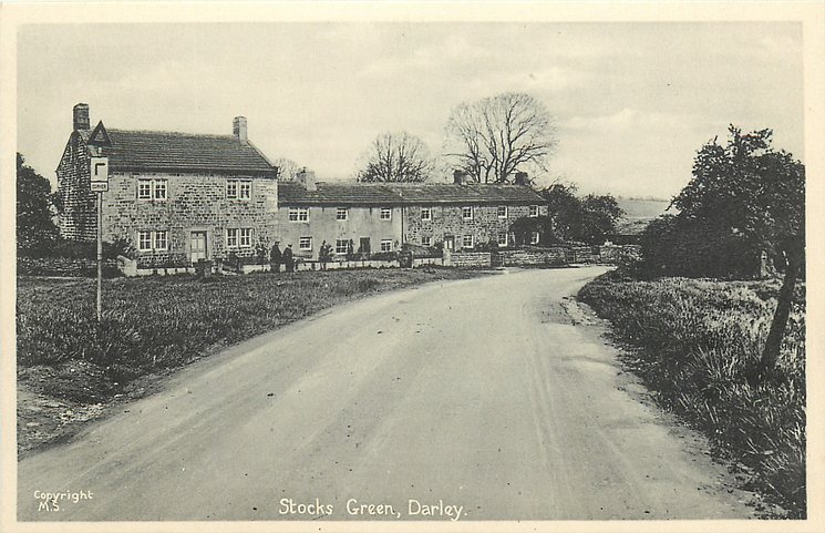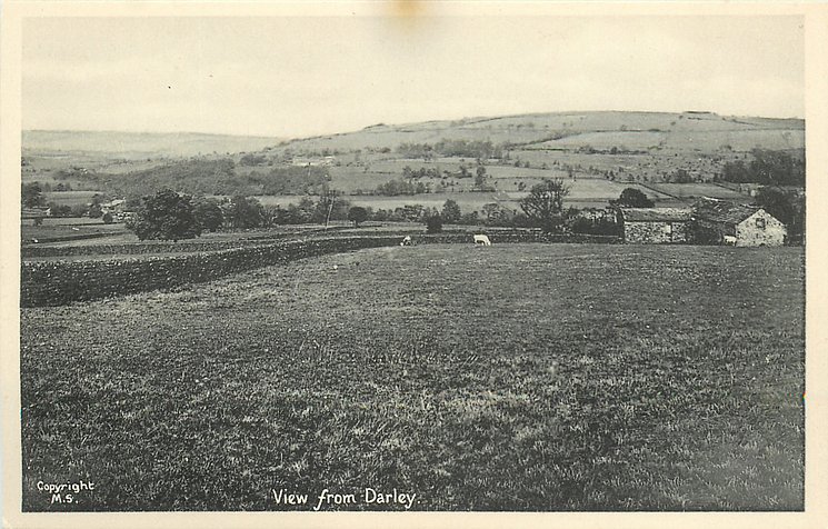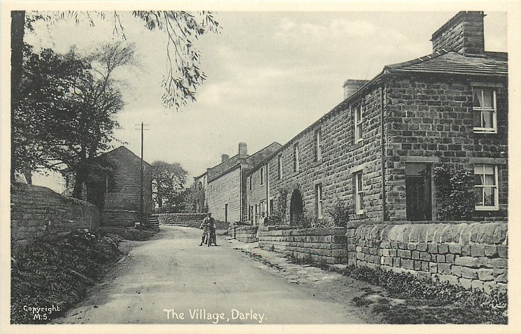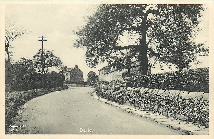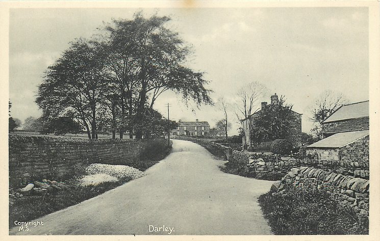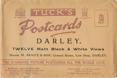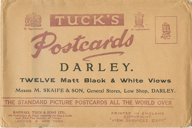 PRINTED IN ENGLAND, on packet TWELVE MATT BLACK & WHITE VIEWS, MESSRS M. SKAIFE & SON, GENERAL STORES, LOW SHOP, DARLEY., COPYRIGHT M.S.
