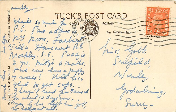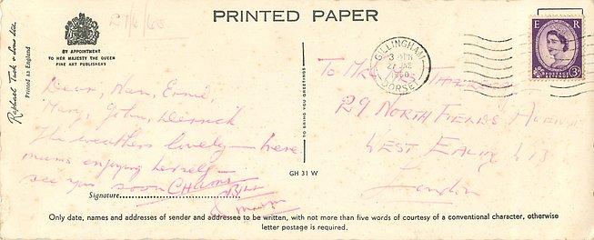 real photograph, PRINTED IN ENGLAND, greetings on back, PRINTED PAPER (on back), title on back
