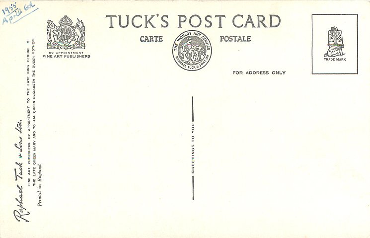 sepia, PRINTED IN ENGLAND, come hand-coloured
