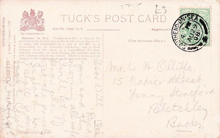 OILETTE, PRINTED IN ENGLAND, listed in 1908/1909 & 1911/1912 Postcard Catalogue