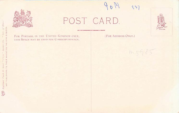 shades of deep purple/grey/black, SILVERETTE, PHOTO BAVARIA, come opt. in red ARMS OF THE ISLE OF MAN, listed in RAPHAEL TUCK & SONS' LD. CHRISTMAS & NEW YEAR 1904/1905 catalogue