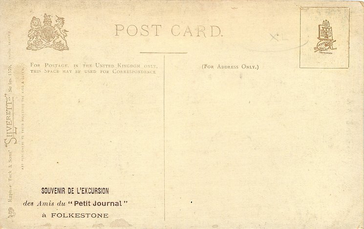 comes SOUVENIR DE L'EXCURSION DES AMIS DU "PETIT JOURNAL" FOLKESTONE on back, the words 'A BIT OF 'often seem partly removed