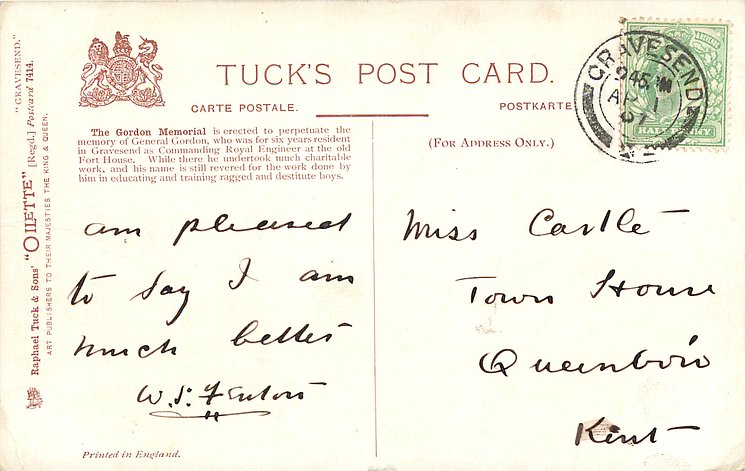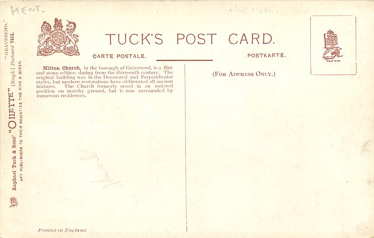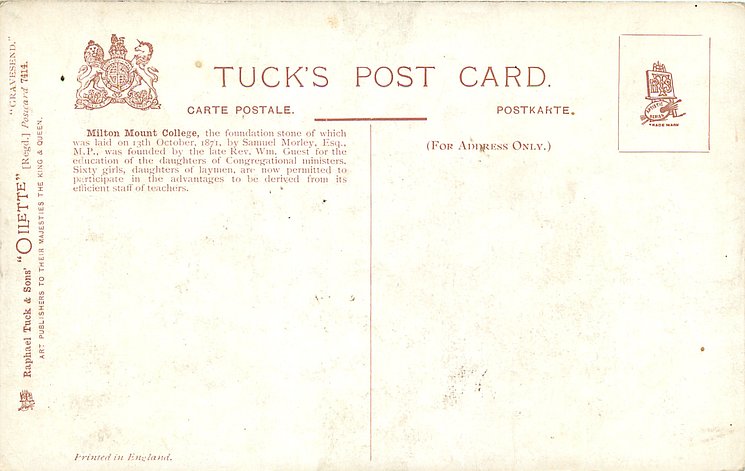 OILETTE, PRINTED IN ENGLAND, listed in 1911/1912 Postcard Catalogue