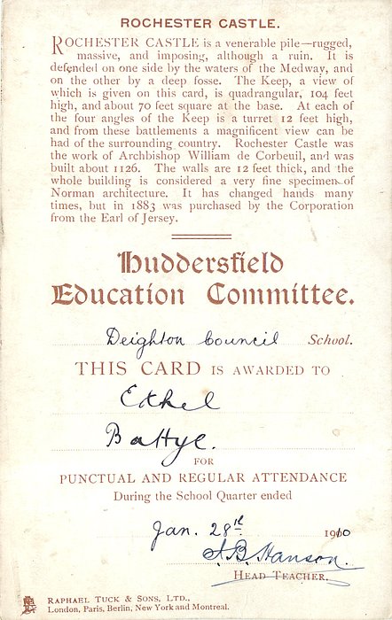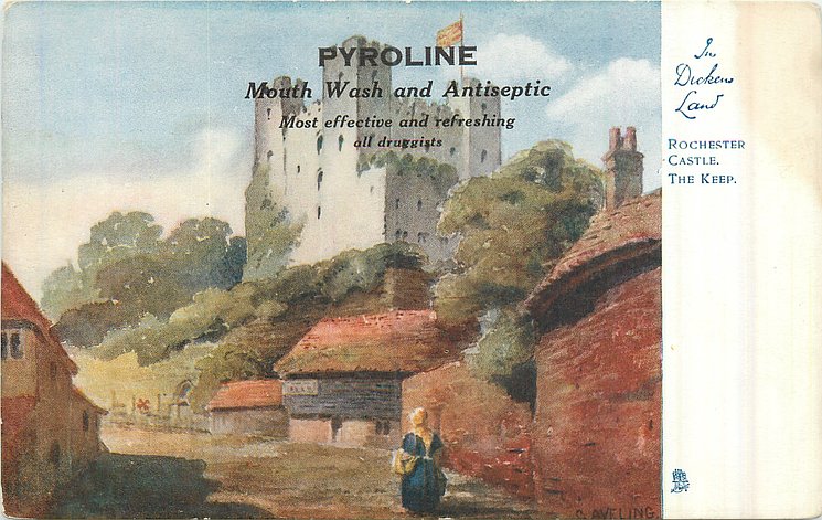 this image & card title used on a reward card by HUDDERSFIELD EDUCATION COMMITTEE come opt. in blue PYROLINE -- MOUTH WASH AND ANTISEPTIC -- MOST EFFECTIVE AND REFRESHING -- ALL DRUGGISTS
