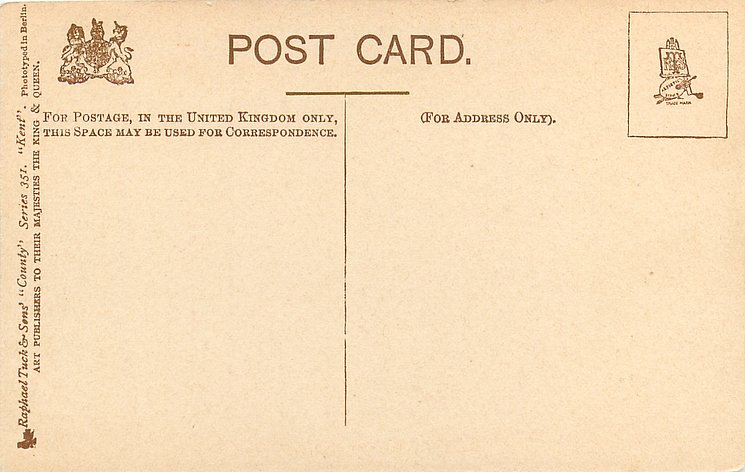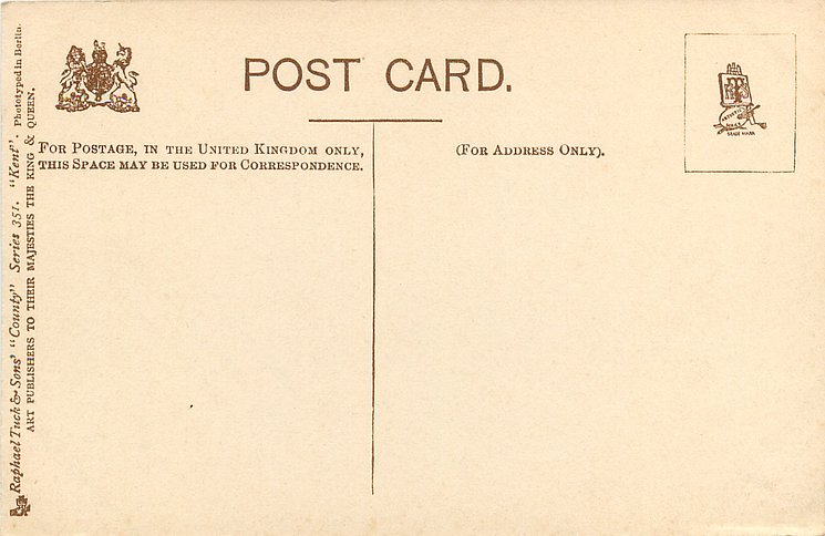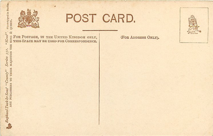 OILETTE PICTURESQUE COUNTIES, PRINTED IN ENGLAND, 2 backs, with or w/o OILETTE on front, listed in 1904/1905 & 1908/1909 & 1911/1912 Postcard Catalogue