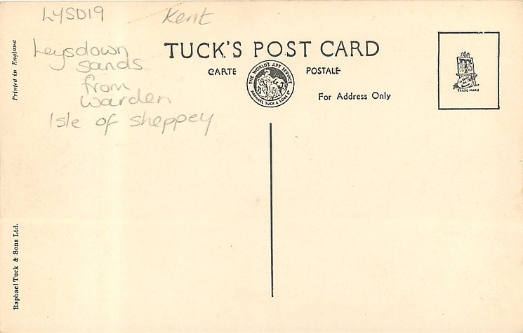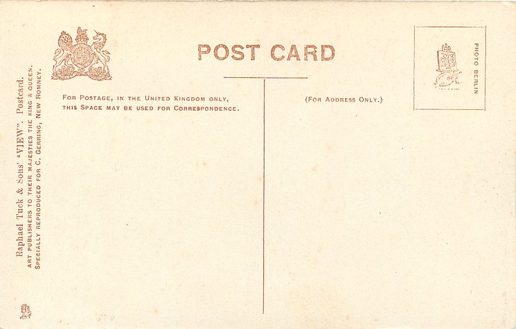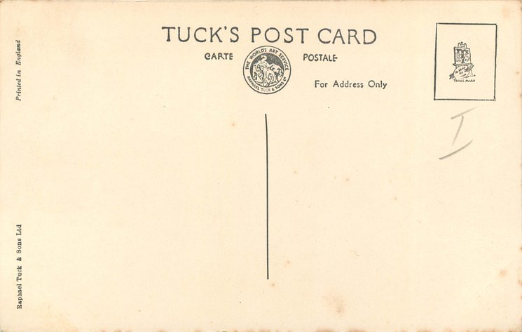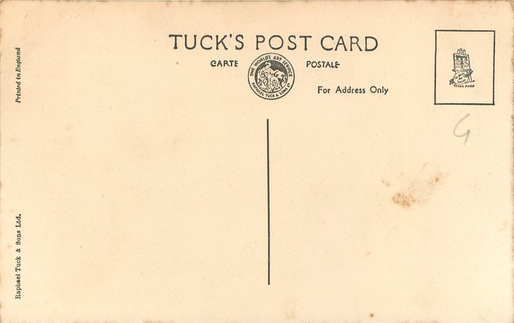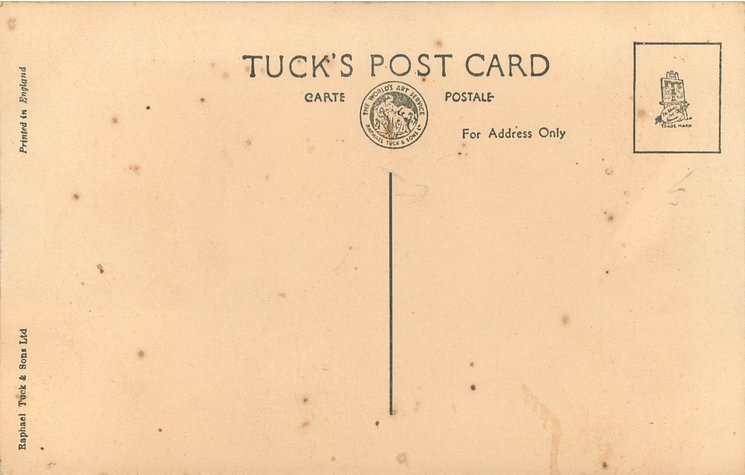 back Tuck logo at base with RAPHAEL TUCK & SONS, LTD. ART PUBLISHERS TO THEIR MAJESTIES THE KING & QUEEN