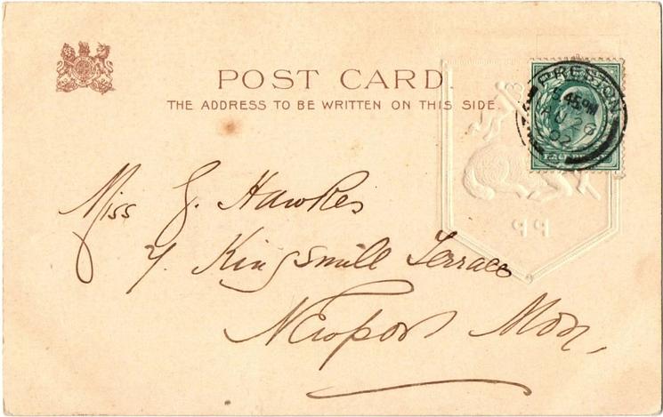 u/b, embossed, DESIGNED IN ENGLAND, CHROMOGRAPHED IN BAVARIA, listed in 1904 postcard Catalogue, same images may exist i/n1141-43, Reported by Queensland come opt.PRESTON GUILD, 1902